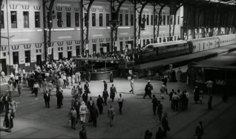 以上截图来自于埃及著名电影《开罗车站》。在黑白镜头下展现出了大量早期开罗车站的画面。